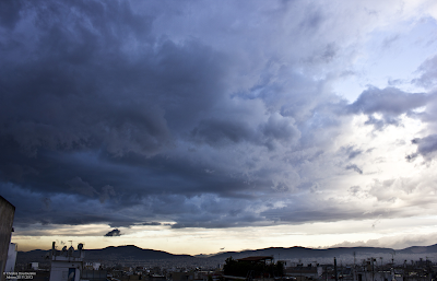 Διάφορες εικόνες με πανέμορφους νεφικούς σχηματισμούς με απόκοσμα χρώματα, μετά τη 1η καταιγίδα και πριν τη 2η, το πρωί: